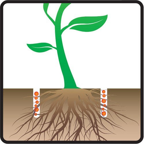- Pro snížení dávky inokula aplikovat přípravek přímo do kontejneru do jamky, zhruba 2-3 cm pod semeno, nebo přímo pod přesazovanou rostlinu tak, aby se nově vyrůstající kořeny dostaly co nejdříve do kontaktu s přípravkem.
