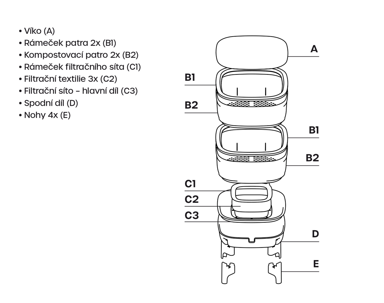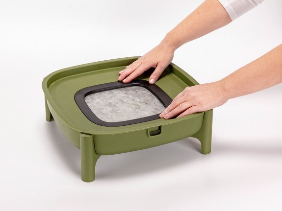 kompostér vytváří ideální prostor pro tvorbu vermikompostu. Díky své konstrukci poskytuje dostatečný přísun vzduchu a také odvod nadbytečné vlhkosti. Důležitá je pouze teplota okolí, která by se měla pohybovat kolem 20 °C a správná vlhkost substrátu. Při dodržování správných zásad vermikompostování obsah kompostéru nezapáchá. Při vermikompostování se využívá schopnost žížal přeměňovat biologické zbytky na organické hnojivo vermikompost. K vermikompostování se hodí především žížaly hnojní, nebo nejlépe speciálně vyšlechtěné Kalifornské žížaly, které se rychle množí a dokáží intenzivně přeměňovat bio odpad na vermikompost. Vermikompostér zredukuje odpad v domácnosti až o 30 %. Kompostér je vyrobený z recyklovaného materiálu. Jeho přirozenou vlastností je mírná barevná nestálost. Jednotlivé části produktu proto mohou mít drobně odlišné zbarvení. Mohou se také objevit drobné vizuální vady jako barevné tečky či lesklé šmouhy, které však neovlivňují funkci produktu. -